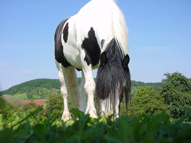 Außerdem mag ich Tiere sehr gern (natürlich lebend, nicht gebraten! :-), und Pferde mag ich ganz besonders! Meine Lieblingsrassen sind Tinker, Araber und Friesen.